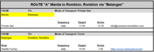 • Route “A” Manila to Romblon, Romblon via “Batangas”
